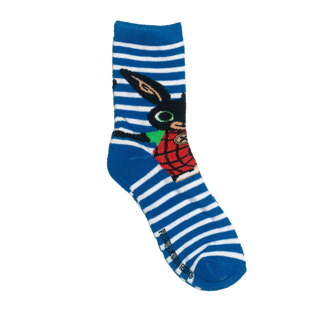 Vidám Bing nyuszi mintás, csíkos zokni kisfiúknak, amely kényelmes és puha viseletet biztosít a mindennapokban. Rugalmas anyaga jól illeszkedik a lábra, és kellemesen tartja a meleget.