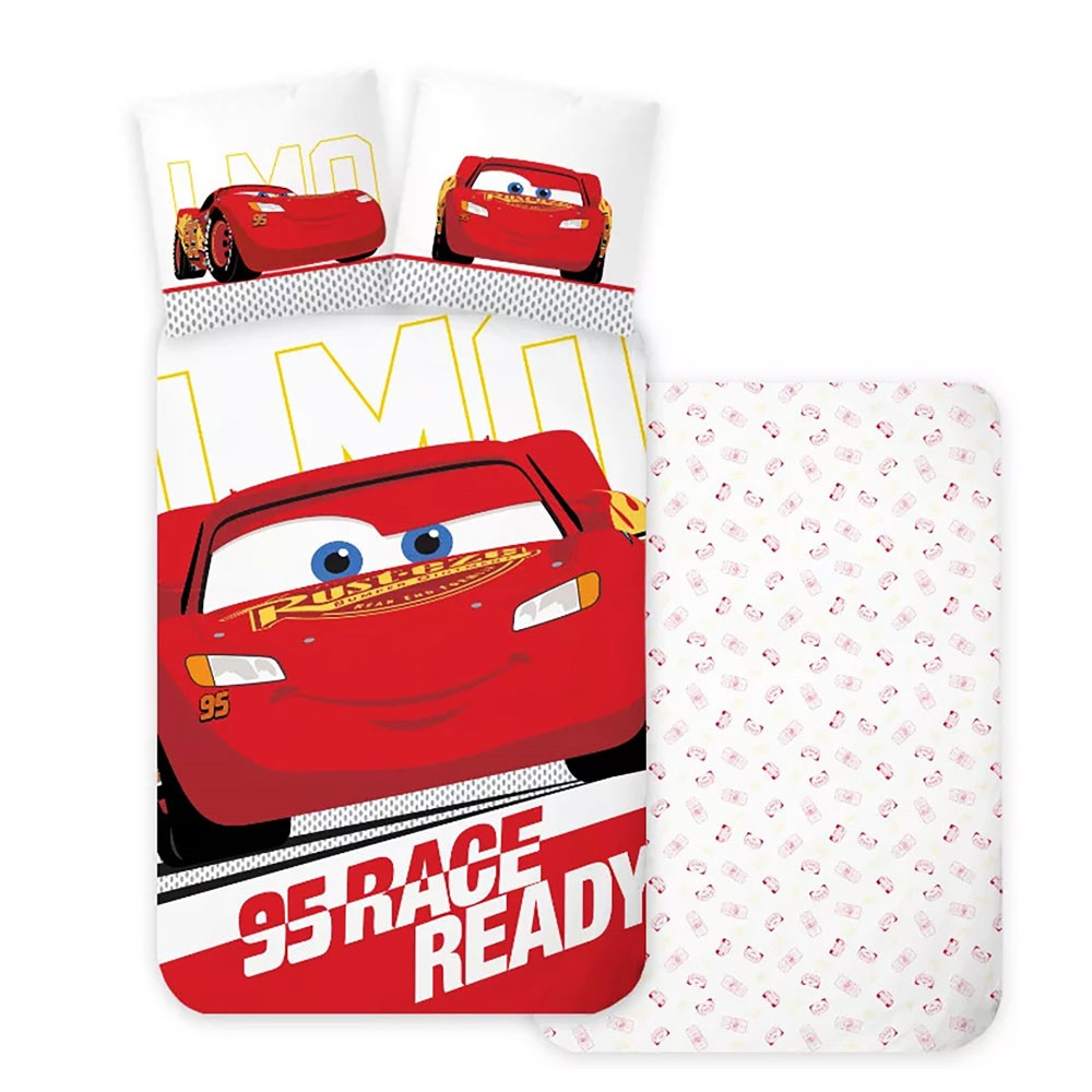 Színes, Disney Verdák (Cars) ágyneműhuzat gyerekeknek, Villám McQueen mintával díszítve. A szett tartalmaz egy paplanhuzatot (100×135 cm) és egy párnahuzatot (40×60 cm).